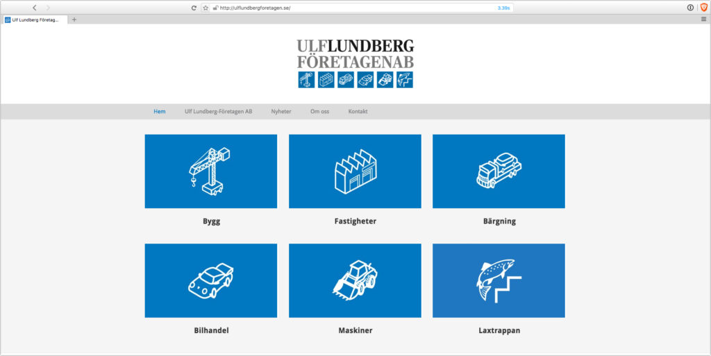 Ulf Lundberg-Företagen är ett investmentbolag i Falun som driver flera olika verksamheter. Att spegla just mångfalden av verksamheter blev en av huvuduppgifterna när vi fick uppdraget att tillsammans med formgivaren Petter Antonisen producera den nya webbplatsen. Petter hade redan innan skapat Ulf Lundberg-Företagens nya logotyp och det blev den vi utgick från när vi skapade webbplatsen. Illustrationerna från logotypen fick bli vägen in i de olika verksamheterna.